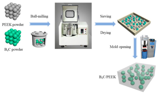 Preparation flow diagram of B4C/PEEK composite materials.