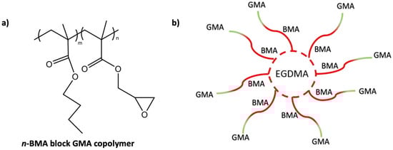 For the synthesis of star-like polymer, tetrabutyl ammonium acetate, methyl trimethylsilyl dimethylketene acetal, cross-linker ethylene glycol dimethacrylate (EGDMA), and monomers BMA and GMA were sourced from Sigma-Aldrich (St. Louis, MI, USA). Tetrahydrofuran (THF) of 99.8% purity was obtained from VWR Chemicals (Radnor, PA, USA).