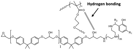 Schematic representation of possible hydrogen bonding interaction between epoxy and n-BMA block GMA copolymer.