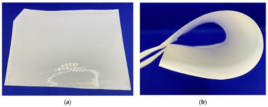 Dynamic viscosity is a crucial parameter that significantly determines membrane properties. The viscosity of the casting solution with a polymer content of 13% was 89.53 Pa·s. Flat membranes with a thickness of 90 μm were obtained from this solution (Figure 5).