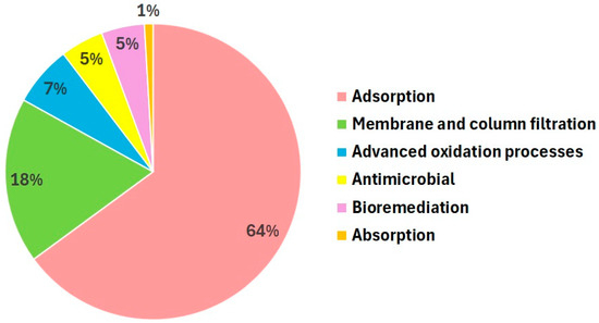 In wastewater treatment, collagen-based materials have been tested in the processes of adsorption, membrane separation, column filtration, column absorption and advanced oxidation processes (photocatalysis and Fenton-like oxidation) and as components of antimicrobial materials. However, most of the studies are focusing on the use of collagen in adsorbents and separation materials (Figure 1). All these technologies are used in the secondary or tertiary stages of wastewater treatment [23]. The tertiary stage is considered the stage that brings the wastewater parameters to the levels set by the wastewater reuse directives. To achieve an optimal management of water resources and to reduce the water deficit, more and more treatment plants should be adapted by including the tertiary treatment stage.