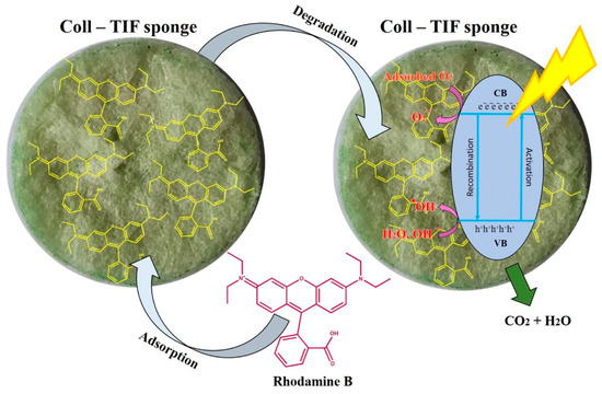 - Nagaraj, S.; Cheirmadurai, K.; Thanikaivelan, P. Visible-light active collagen-TiO2 nanobio-sponge for water remediation: A sustainable approach. Clean. Mater. 2021, 1, 100011. [Google Scholar] [CrossRef]