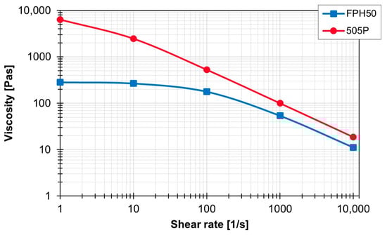 Figure 3 compares the viscosity curve over the shear rate of the two materials at 210 °C.