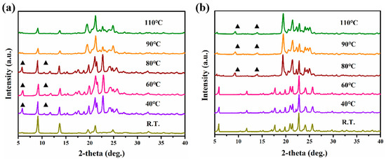 Effect of temperature: Approximately 5 g of solid powder was placed in the Petri dish and subjected to various temperature conditions (40, 60, 80, 90, 110 °C) for 4–6 h. The solid structure of the samples was monitored using PXRD.