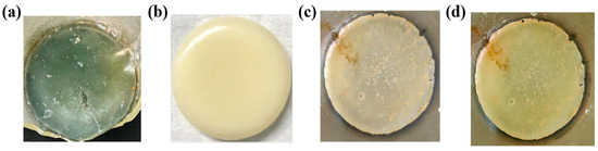 Infrared spectra were measured using ATR total reflection with an FTIR (NICOLET iS5, Thermo Fisher Scientific, Waltham, MA, USA) spectrometer. The measurement range was 4000 to 600 cm−1 with a resolution of 4.0 cm−1, and 256 scans per spectrum were conducted under ambient conditions, using atmospheric data for background correction.