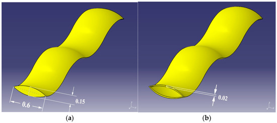 The basic single-yarn model is illustrated as a three-dimensional solid object with an oval cross-section with certain crimp wave for both the warp yarn and the weft yarn, as shown in Figure 6. The major axis and the minor axis for the oval cross-section of single-yarn model are set as 0.6 mm and 0.15 mm, according to the observation. This basic single-yarn model is further wrapped by the tube with the thickness around 0.02 mm, representing the part of staple fiber spun tightly and wholly on the CSC yarn, which is further composed to form Fb and Fc.