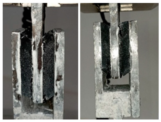 Given that GTR particles do not undergo a revulcanization process, it is important to utilize an adhesive that ensures a robust bond at the interface between the rubber layers and the reinforcement. In this study on the fabrication of seismic isolator prototypes, two types of adhesives were employed. The first adhesive was the MDI prepolymer binder (PB-MDI), initially used for bonding GTR particles, and the second was a hybrid mounting adhesive (PF). The mechanical properties of these adhesives, as determined by Rivas et al. [25], are presented in Table 4.