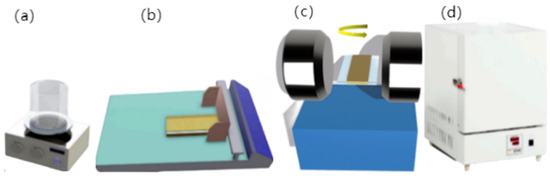 (a–d) The processes of mixing, smearing, magnetron sputtering, and drying, respectively.