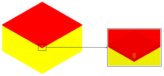 Using the Hypermesh 2022 software, models of the body armor target plate, fragment, and gelatin were created and meshed. To save computational time, all models using a quarter model and symmetric constraints were set on the symmetric boundaries. The body armor target plate is 200 mm in length and width, with a total thickness of 4.124 mm.