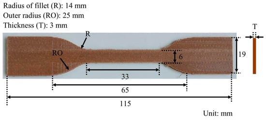 Dimension of the 3D-printed WPC part for tensile test.