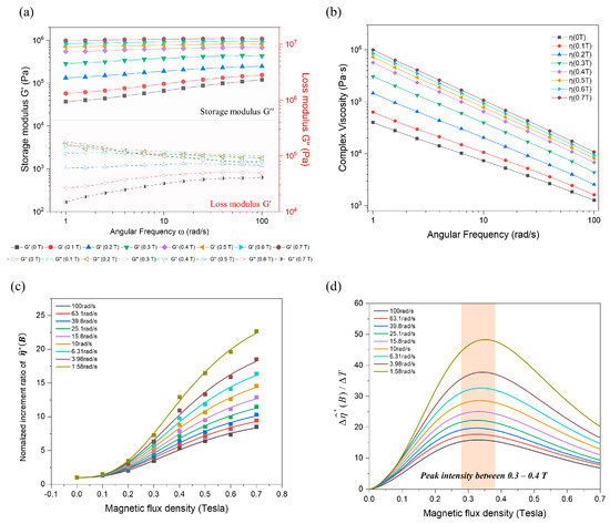 - Palacios-Pineda, L.M.; Perales-Martinez, I.A.; Lozano-Sanchez, L.M.; Martínez-Romero, O.; Puente-Córdova, J.; Segura-Cárdenas, E.; Elías-Zúñiga, A. Experimental investigation of the magnetorheological behavior of PDMS elastomer reinforced with iron micro/nanoparticles. Polymers 2017, 9, 696. [Google Scholar] [CrossRef]