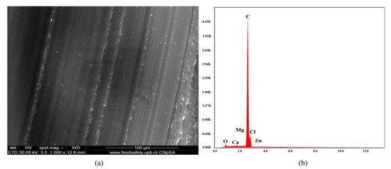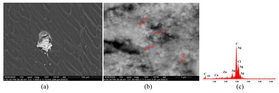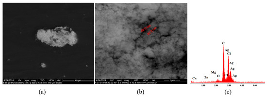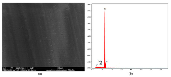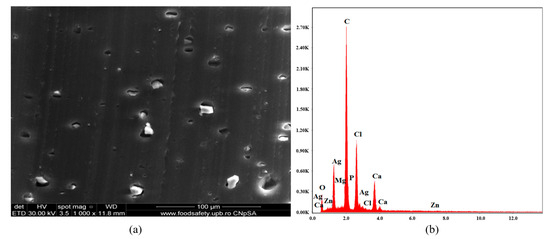 Microstructural investigations of all materials (C1 ÷ C9) and a rough particle size evaluation of antimicrobial additives were performed by Scanning Electron Microscopy (SEM) and Energy-Dispersive X-ray Analysis (EDAX), using a FEI Quanta Inspect F Scanning Electron Microscope (FEI Company, Hillsboro, OR, USA).