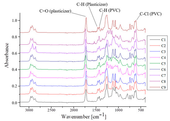 We performed nine compositions of PVC coded as C1 ÷ C9 according to Table 1. The substances were weighed with precision using a RADWAG balance (Radom, Poland).