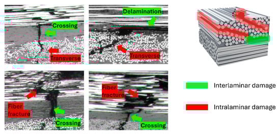 Overview of observed interlaminar and intralaminar damage mechanisms used to create the damage profiles in Figure 9.