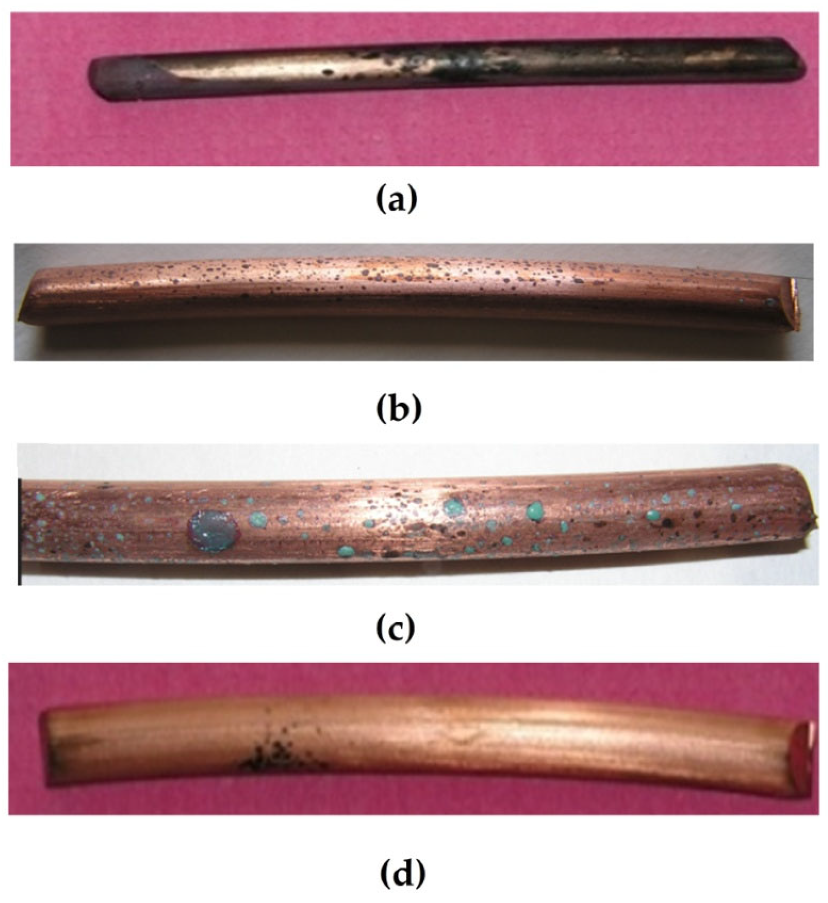 9]. In some conditions, corrosion inhibitors are recommended as a protective measure. Nitrogen-containing compounds, such as those with an azole group in the molecule, such as benzotriazole, have proven to be the most effective for protecting copper. Sulfur-containing organic corrosion inhibitors, such as sodium diethyldithiocarbamate, are also effective [
