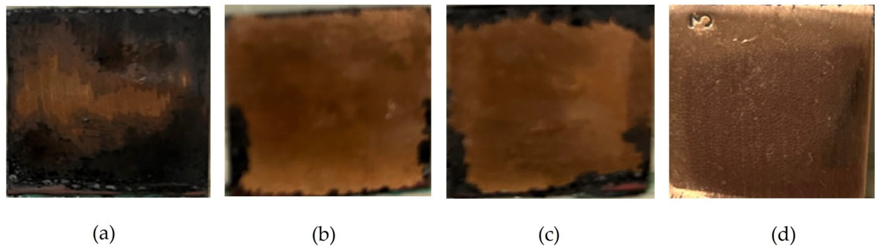Figure 4), in addition to rectangular specimens, specimens of copper rod wire with a diameter of 8 mm and a length of 10 cm were used.