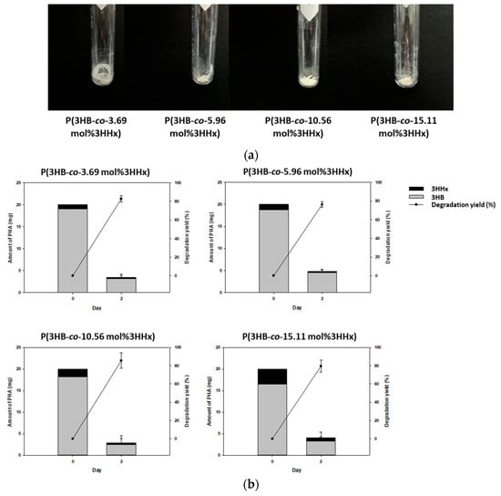 3.6.2. Degradation of of P(3HB-co-3HHx) with Various 3HHx Mole Fractions
