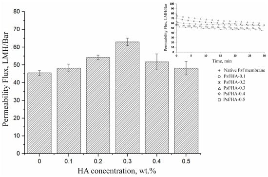 Permeability flux of Psf membranes with varied HA concentrations.
