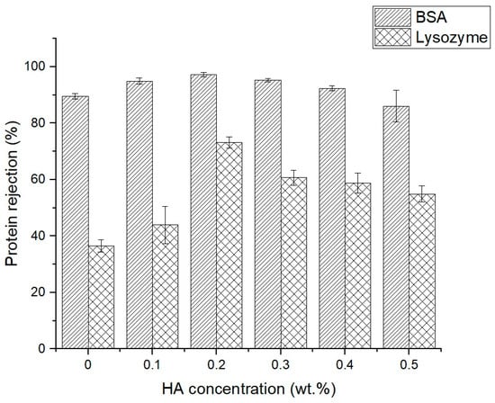 Protein rejection of Psf membranes with varied HA concentrations.
