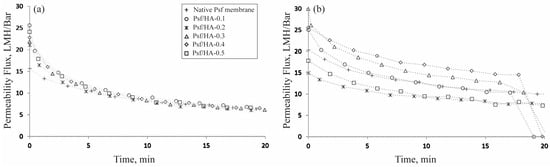 Flux decline ratio (FDR); (a) Native Psf membrane; (b) Psf/HA-0.2.