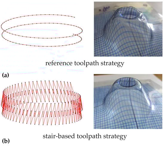 - Formisano, A.; Boccarusso, L.; De Fazio, D.; Durante, M. Effects of Toolpath on Defect Phenomena in the Incremental Forming of Thin Polycarbonate Sheets. Int. J. Adv. Manuf. Technol. 2024, 133, 4957–4966. [Google Scholar] [CrossRef]