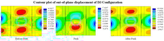 Figure 7 illustrates contour plots of the out-of-plane displacements in these three moments.