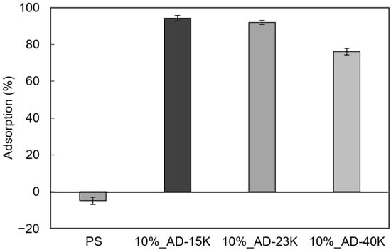 Surface segregation is more common in low-molecular-weight polymers. In this study, AD-15K, the lowest molecular weight polymer, had the highest concentration of cationic groups on its surface (Figure 8). However, the effect of molecular weight on surface segregation depends on the interface. For example, low-molecular-weight polymers are more likely to concentrate at air interfaces, whereas higher-molecular-weight polymers tend to concentrate at solid interfaces [55]. The surface properties of materials also vary depending on the manufacturing method, presenting additional opportunities for research.