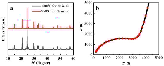 The ionic conductivity of the LATP pellet measured by EIS and shown in Figure 2b. According to the results, its value reached 6.4 × 10−5 S·cm−1, which is comparable with the literature [33,39].