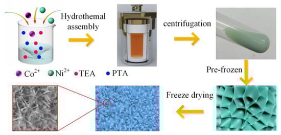 Polyvinyl alcohol (PVA) was purchased from Sigma-Aldrich. Acetylene black, potassium hydroxide (KOH), dimethylformamide (DMF), nickelous nitrate hexahydrate (Ni (NO3)2·6H2O), cobaltous nitrate hexahydrate (Co (NO3)2·6H2O), triethylamine (TEA), ethanol, terephthalic acid (PTA), activated carbon (AC), polyvinylidene fluoride (PVDF), and other reagents were of analytical reagent grade. All the chemicals were directly used after purchase. The experimental measurements were carried out under ambient conditions.