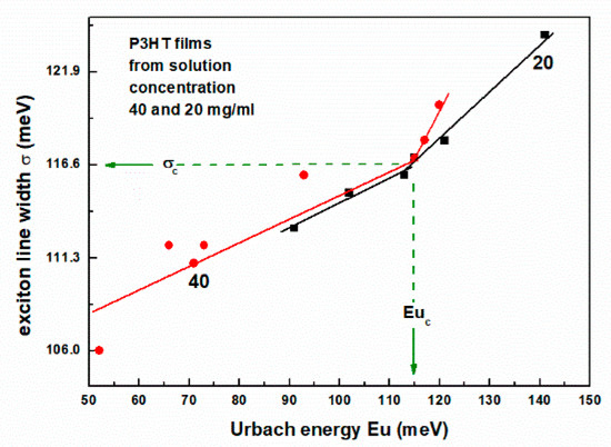 Plots of the exciton linewidth σ, from such fits, as a function of the Urbach energy, are shown in Figure 10. As can be seen, a clear change in slope occurs at the characteristic value of σc and Euc, as indicated in Figure 10.