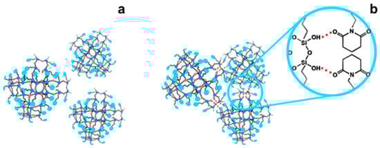 Figure 10. 1-[3-(Silsesquioxanyl)propyl]piperidine-2,6-dione 2a: (a) in aqueous salt solution (unassociated state) and (b) in water (associated state).