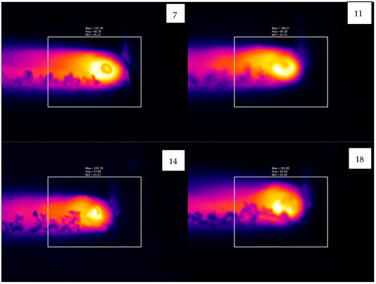 The thermal images of the samples with the best weld strength (experiments 1, 6, 7, 11, 14, and 18).