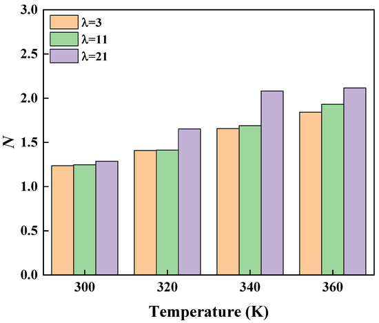 Using the proton conductivity σE of Nafion 117, proposed in a previous study [49] as a function of temperature (T) and water content (λ), the proportionality coefficient N can be expressed as follows