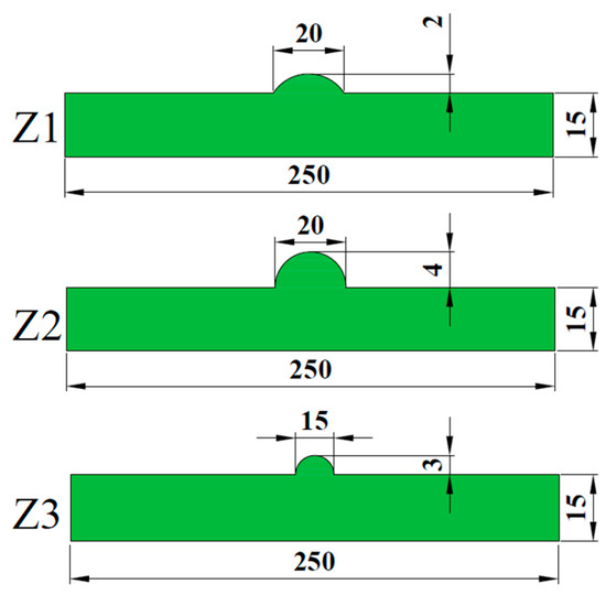 Figure 6. Size diagram of wrinkle defect specimens (units: mm). - (3).