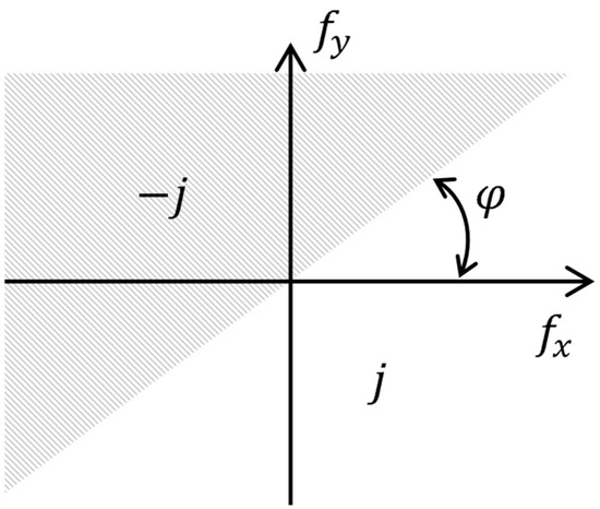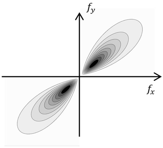 where and were corresponding spatial frequencies, and was a slope angle of the transformation. This expression could be interpreted as directional filtering in the 2D frequency domain with the following characteristic (Figure 2):