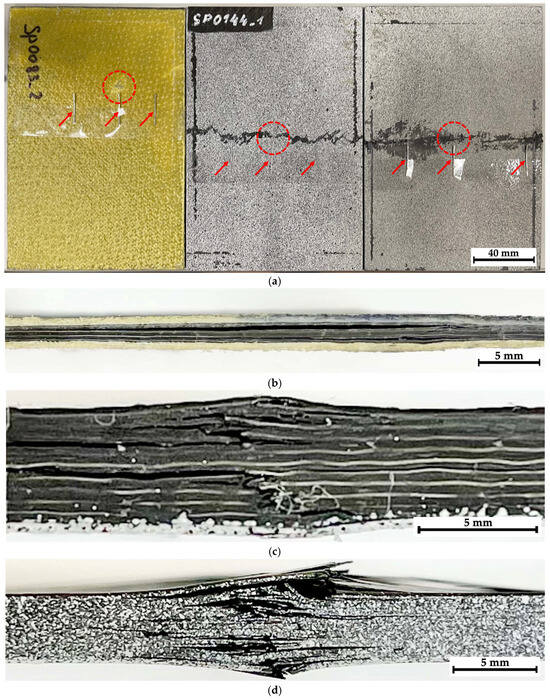 Interferometric/shearography methods, which are highly sensitive to the development of out-of-plane deformations, can be successfully applied to detect impact discontinuities of various sizes [18,19]. Thermal (infrared) inspection methods are also used if the thermophysical properties of materials and their inclusions/voids differ significantly [20,21]. Recently, some research results have been reported on testing CFRPs through terahertz inspection, which is suitable for detecting impact damage in thick products [22,23].