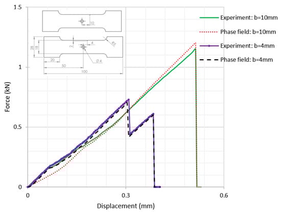 - Pham, K.H.; Ravi-Chandar, K.; Landis, C.M. Experimental validation of a phase-field model for fracture. Int. J. Fract. 2017, 205, 83–101. [Google Scholar] [CrossRef]