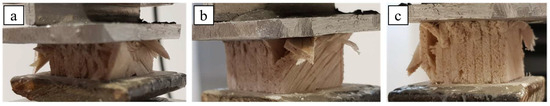 In order to observe the peculiar damage mechanisms, Figure 6 shows the specimens during the flatwise compression test.