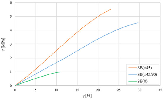 Average shear curves for sandwiches SB(0), SB(±45), and SB(±45/90).