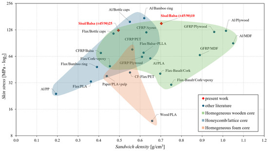 - the comparisons with the sandwiches reported in the literature have shown that the skin stress of the proposed optimal sandwich is higher than both the homogeneous foam core and the homogeneous wooden core, and it is comparable with the best sandwiches having a honeycomb/lattice core. Similar results are obtained in terms of specific stress by considering the actual specific sandwich density;