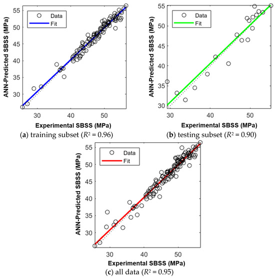 Parity plots—experimental vs. ANN prediction of SBSS.