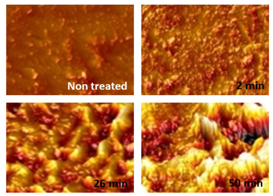 5.1. Plasma Treatment: Wetting Properties and Surface Fractal Scaling