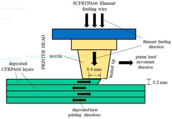 However, to date, efficient recycling methods have not been developed for PA [4]. Instead, PA is reported to be burned for energy generation, which not only releases CO2 but also toxic nitrogenous NOx greenhouse gases [4,5], which harm the human brain, and reduce the ozone layer [4]. N2O is a greenhouse gas that has a 265-times-higher global warming potential than CO2 [4]. Although beyond the scope of this study, the urgent need for developing methods of clean recycling of PA must be stressed here for a sustainable and healthy environment. Another disadvantage is that PA absorbs water easily, being hydroscopic. Hence, it needs to be dried prior to molding to avoid void formation. However, the 3D printing of the 3D-SCFRPA66 composite herein resulted in no observable voids.