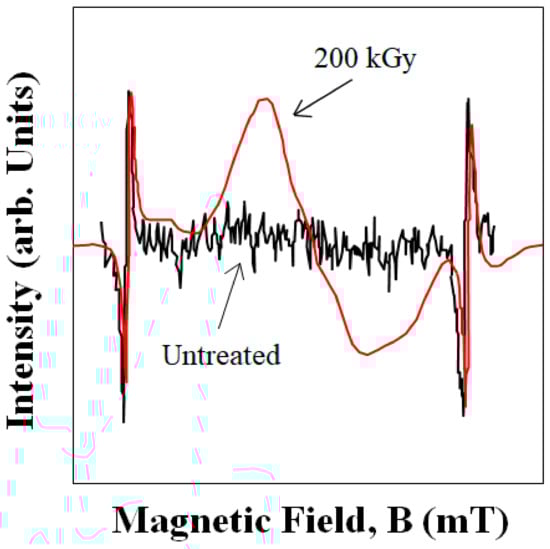 ESR signals for 200 kGy HLEBI-treated and untreated Nylon 6 samples. Adapted from Nishi et al. (2008) [51].