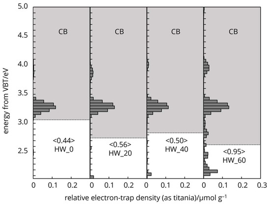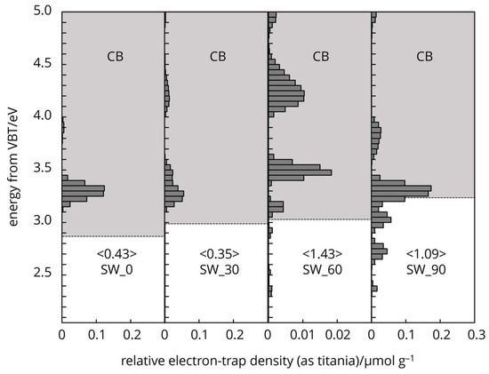 - Nitta, A.; Takase, M.; Takashima, M.; Murakami, N.; Ohtani, B. A Fingerprint of Metal-oxide Powders: Energy-resolved Distribution of Electron Traps. Chem. Commun. 2016, 52, 12096–12099. [Google Scholar] [CrossRef]