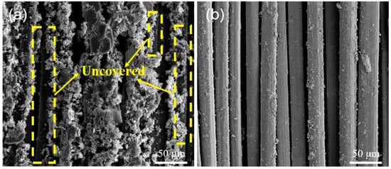 | Surface coating | Poly (dopamine), Poly pyrrole, tannic acid (TA)-Na+, metallic coating | Simple and fast, but the effect is greatly affected by the environment and the coating is easy to peel off. | – | Shear strength: 43.3% (↑) Tensile strength: 28% (↑) IFSS: (↑) | [25,26,68,72,80,81,82,83,84,85,86,89,91,92] |