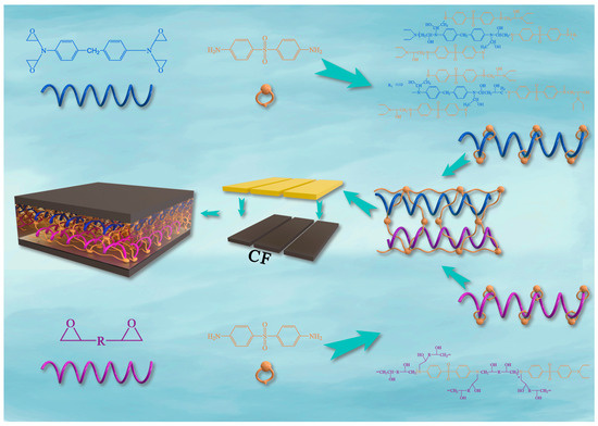 - Cheng, X.; Han, Q.; Yue, B.; Shi, M.; Yang, C. Self-assembled nano-polymers modified water-based sizing agent for enhancing the dual interfacial properties of carbon fibre/epoxy resin composites. Compos. Part B Eng. 2023, 262, 110828. [Google Scholar] [CrossRef]