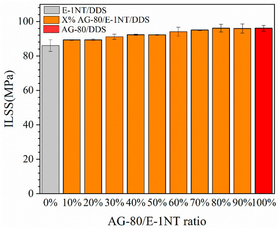 ILSS of the CF composites reinforced with different ratios of AG-80/E-1NT/DDS.