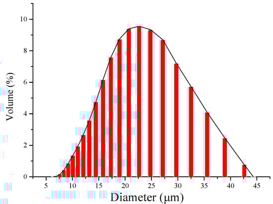 Figure 6 shows the particle size distribution of the magnetic hemicellulosic microspheres, indicating that most microspheres fall within the 20 to 25 μm range, which aligns with the SEM findings.