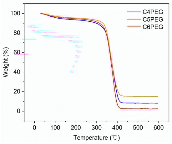 The TGA curves of C4PEG, C5PEG, and C6PEG.